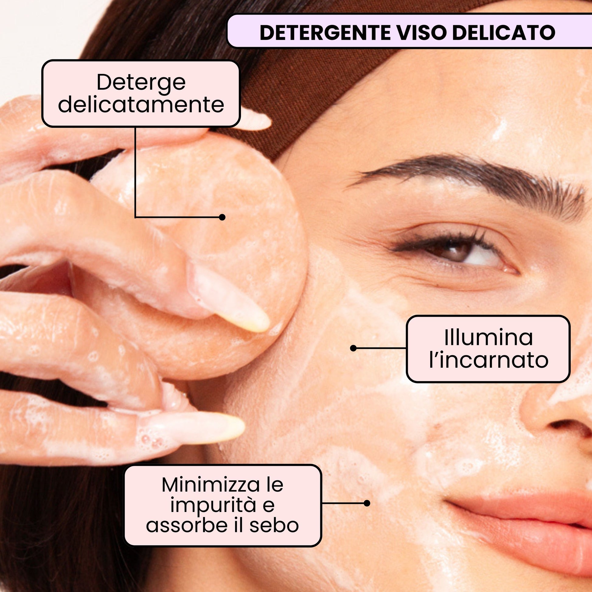 Detergente Viso Solido: Una formula delicata ma efficace per la pulizia quotidiana del viso. Rimuove le impurità lasciando la pelle fresca, pulita e luminosa, pronta per iniziare o concludere la giornata.