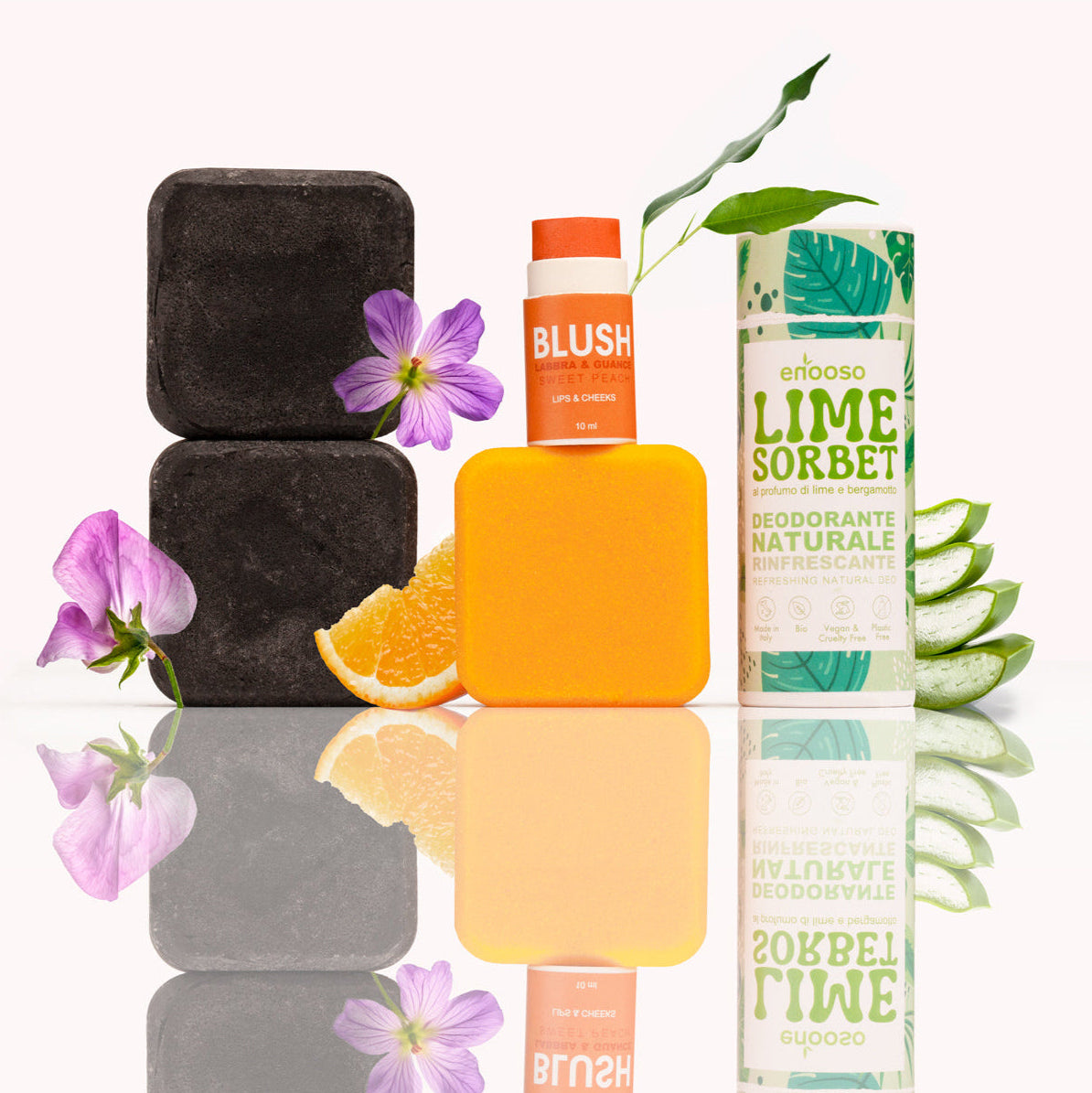 Abbiamo creato Enooso per offrire un’alternativa ai cosmetici liquidi pieni di plastica e compromessi. Ogni nostro prodotto è solido, vegano e plastic-free: pratico da usare, delicato sulla pelle e gentile con il pianeta.
