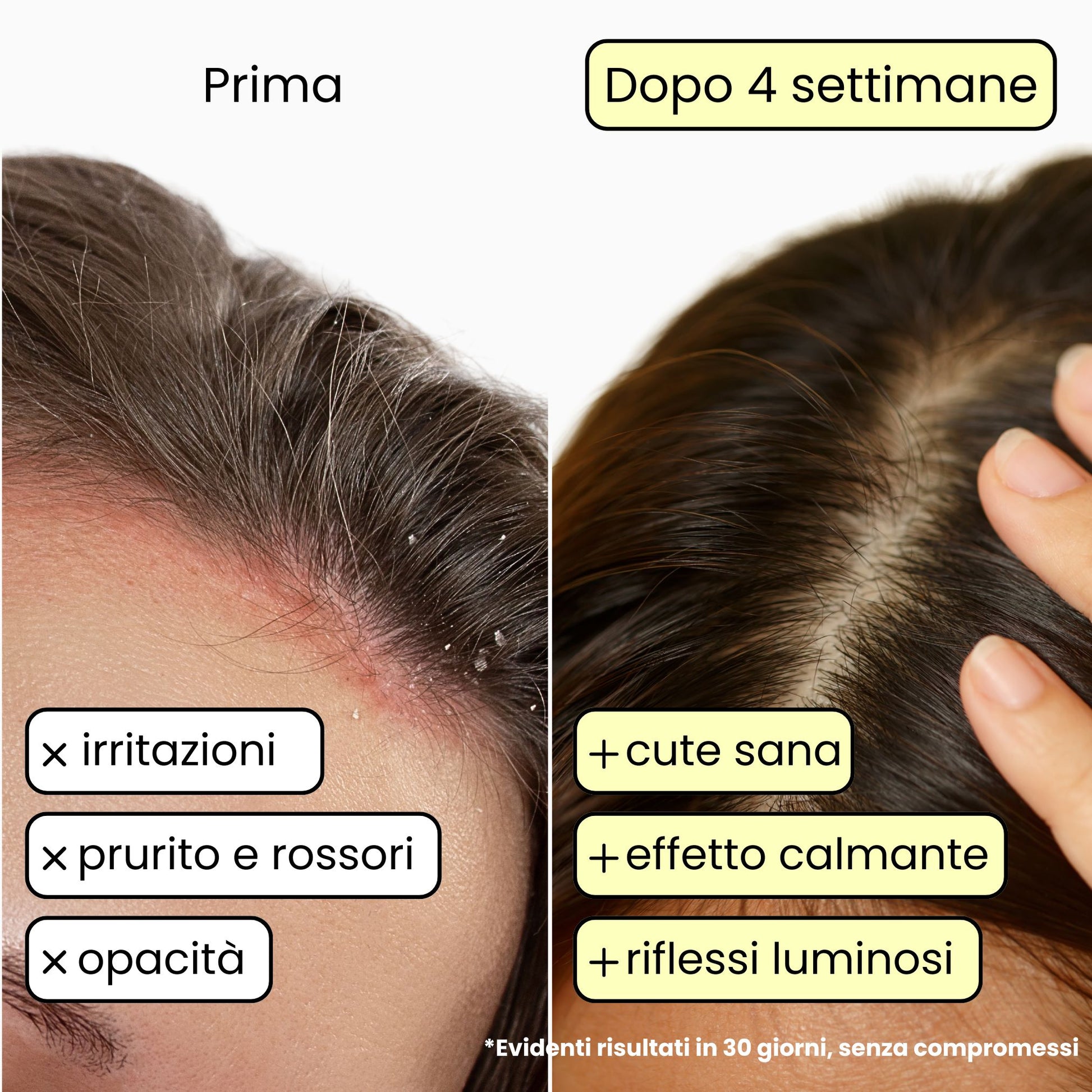 In questo modo, già dopo pochi lavaggi, vivrai le giornate sicura di avere una chioma forte e sana in qualsiasi condizione climatica, e senza il fastidio di una cute irritata.