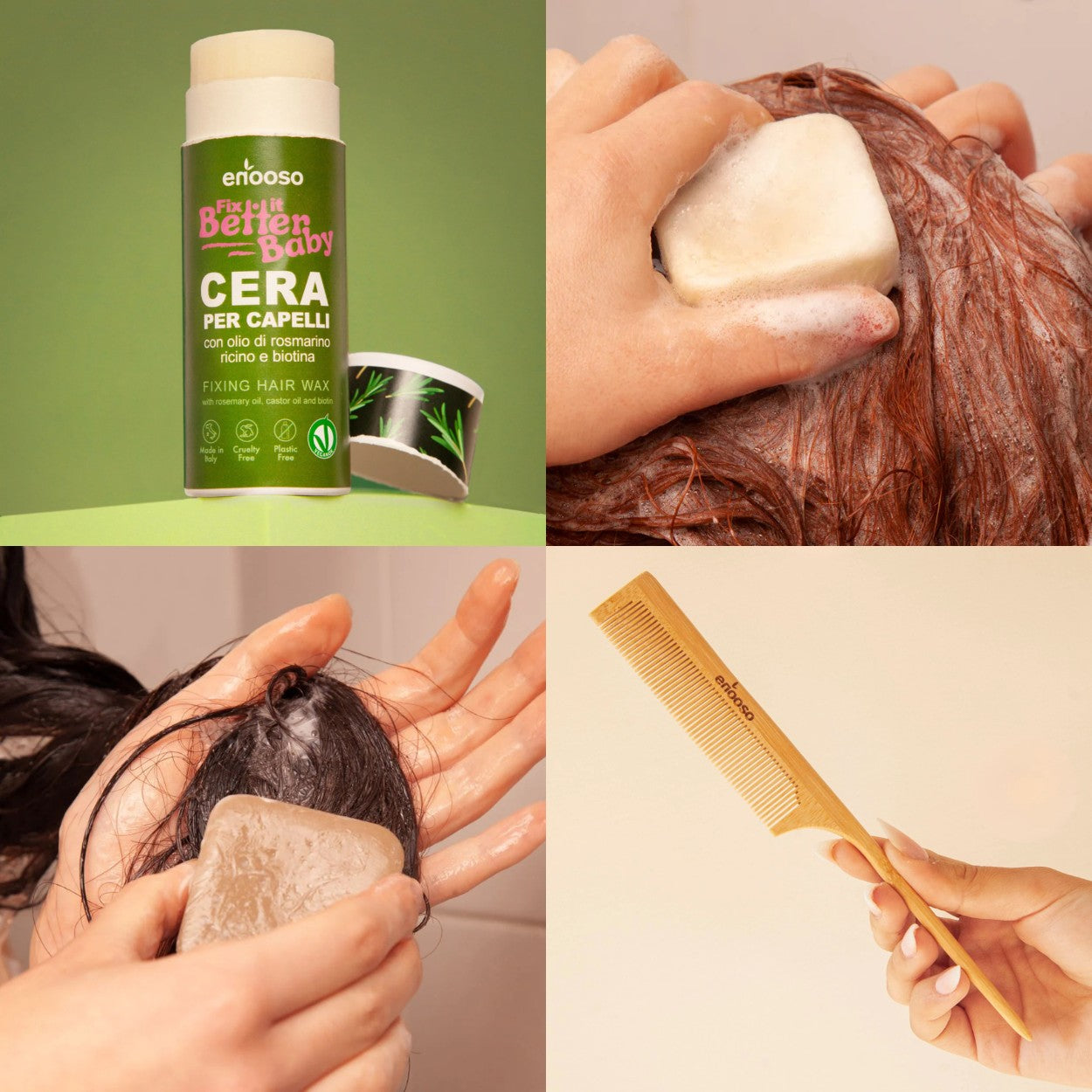 Abbiamo creato Enooso per offrire un’alternativa ai cosmetici liquidi pieni di plastica e compromessi. Ogni nostro prodotto è solido, vegano e plastic-free: pratico da usare, delicato sulla pelle e gentile con il pianeta.